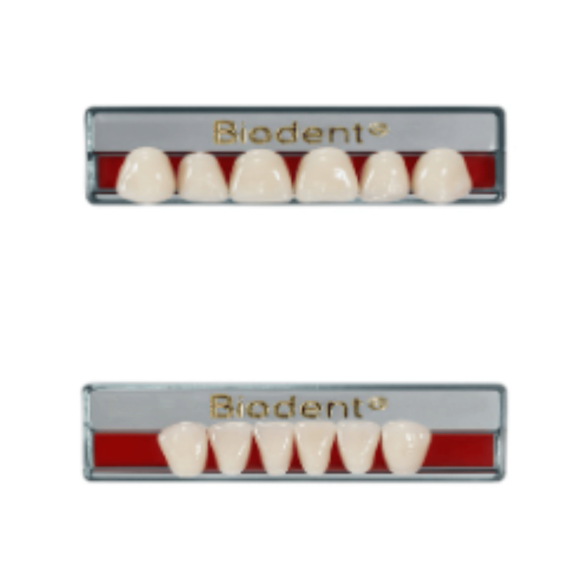 Las diferentes marcas de dientes de 2 capas ofrecen una de las más amplias líneas del mercado. En cada marca se han seleccionado cuidadosamente las referencias y gama de colores que más se adaptan al mercado para el cual están dirigidas, lo que facilita una selección más exacta de la tonalidad y la anatomía de los dientes requeridos para la rehabilitación.